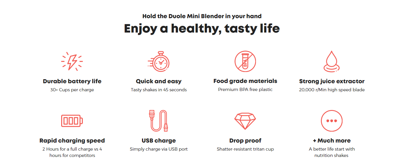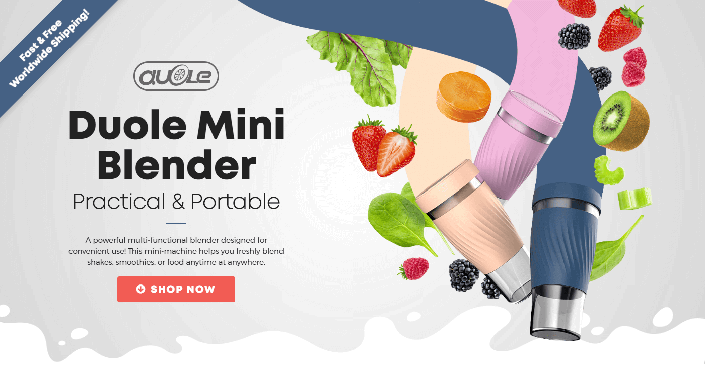 I designed this sales page for Duole, a portable handheld blender, for its launch on Shopify. The main challenge was the limited imagery, as the product renders were too small to use by themselves.