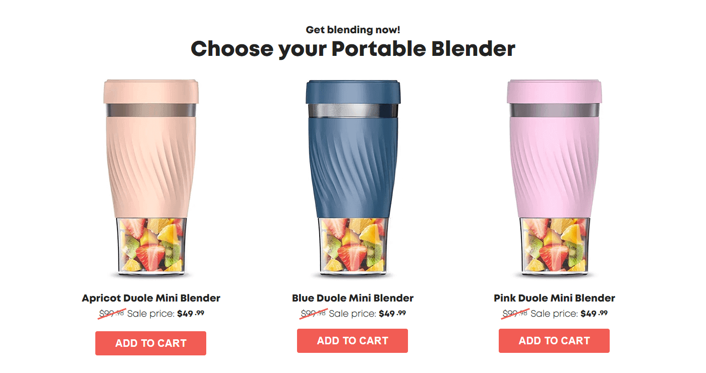 Sale page with Shopify integration for a handheld mini blender.