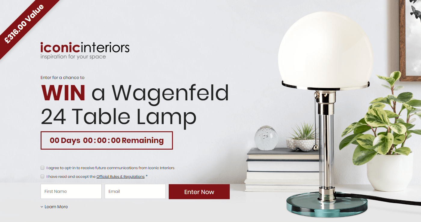 Iconic Interiors is a furniture retailer and showroom based in Nether Alderley, England. To increase their online presence they launched a series of designer furniture giveaways.