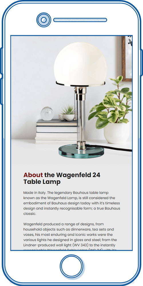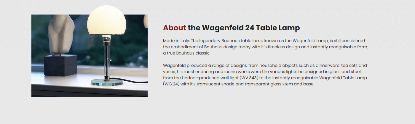 The first giveaway featured a Wagenfeld table lamp, with only isolated product images available for use. To provide a sense of how the lamp might fit into a living space, I crafted composite lifestyle images sourced from Adobe Stock. Drawing inspiration from architectural magazines, I structured the layout of the featured products to have plenty of white space.